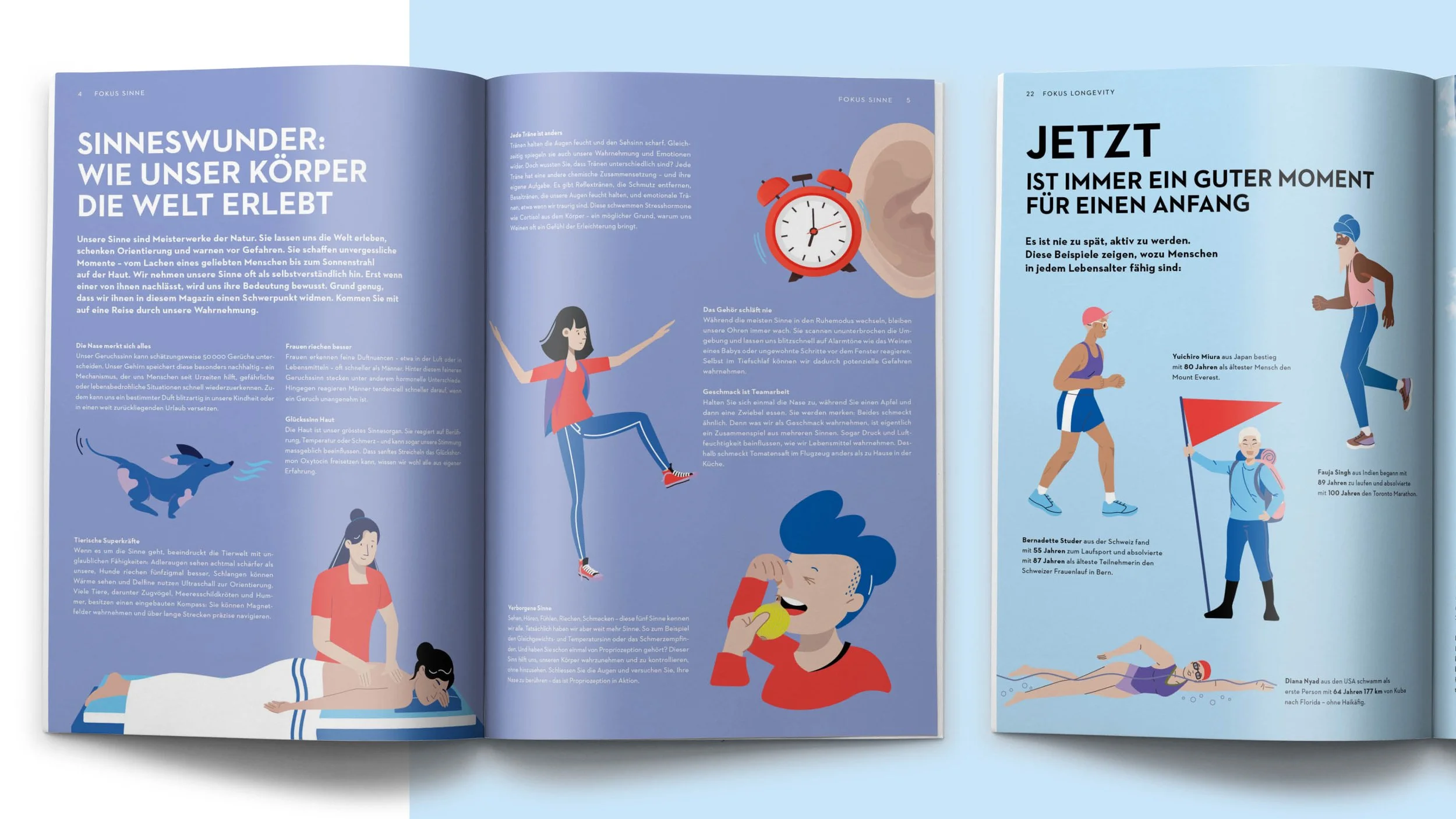 Neben den Illustrationen wurde das Layout der Magazine umgesetzt und optimiert. Durch eine stimmige Kombination von Text, Bild und Typografie entstand ein lesefreundliches, attraktives Magazin, das die Leser:innen anspricht und die Inhalte wirkungsvoll vermittelt.